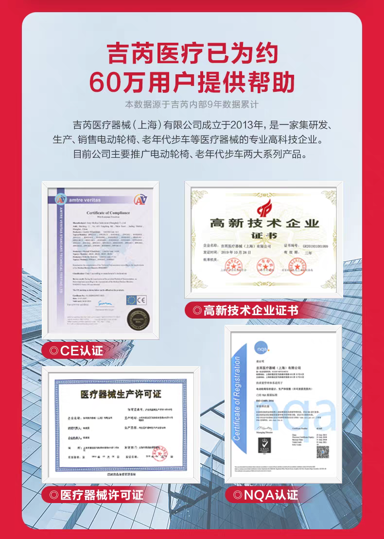 | 服务承诺 | 本公司是一家专业研发、生产、销售电动、手动轮椅的高新技术企业。多年来公司致力于不断创新及提升产品质量, 在国内外市场取得良好口碑。本公司承诺: 1、所有出厂产品都经过严格检验; 2、严格按照订单的商品名称、规格、数量进行配送,并保证送货上门,不收取配送费用; 3、指导用户安装使用,并进行定期回访; 4、造配对象使用中产生售后问题,我们在接到电话后12小时内响应; 5、控制器、电机、车架保修一年,人为使用不当及自然灾害引起的不在保修范围之内; 6、公司成立专业的售后服务小组 | 是否进口 | 否 |