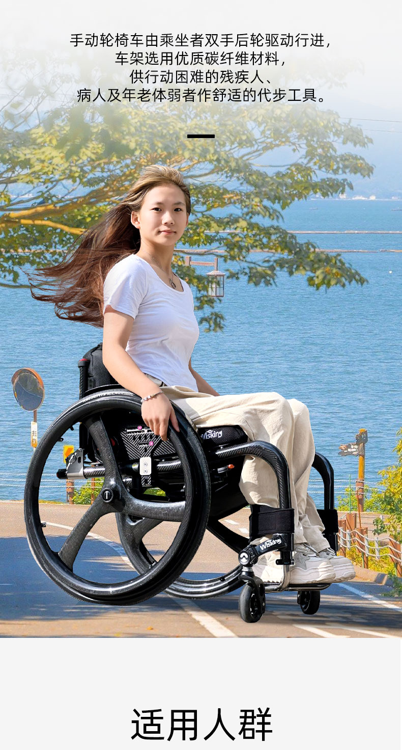 | 产品材质 | 碳纤维车架,碳纤维边板 | 使用说明 | 威之群运动式生活轮椅是根据脊髓损伤者的受伤位置、身高、体重,坐宽、坐深、小腿长度来量身定制的轮椅,非常人性化、个性化的解决了不同伤友对轮椅的不同需求问题。 |