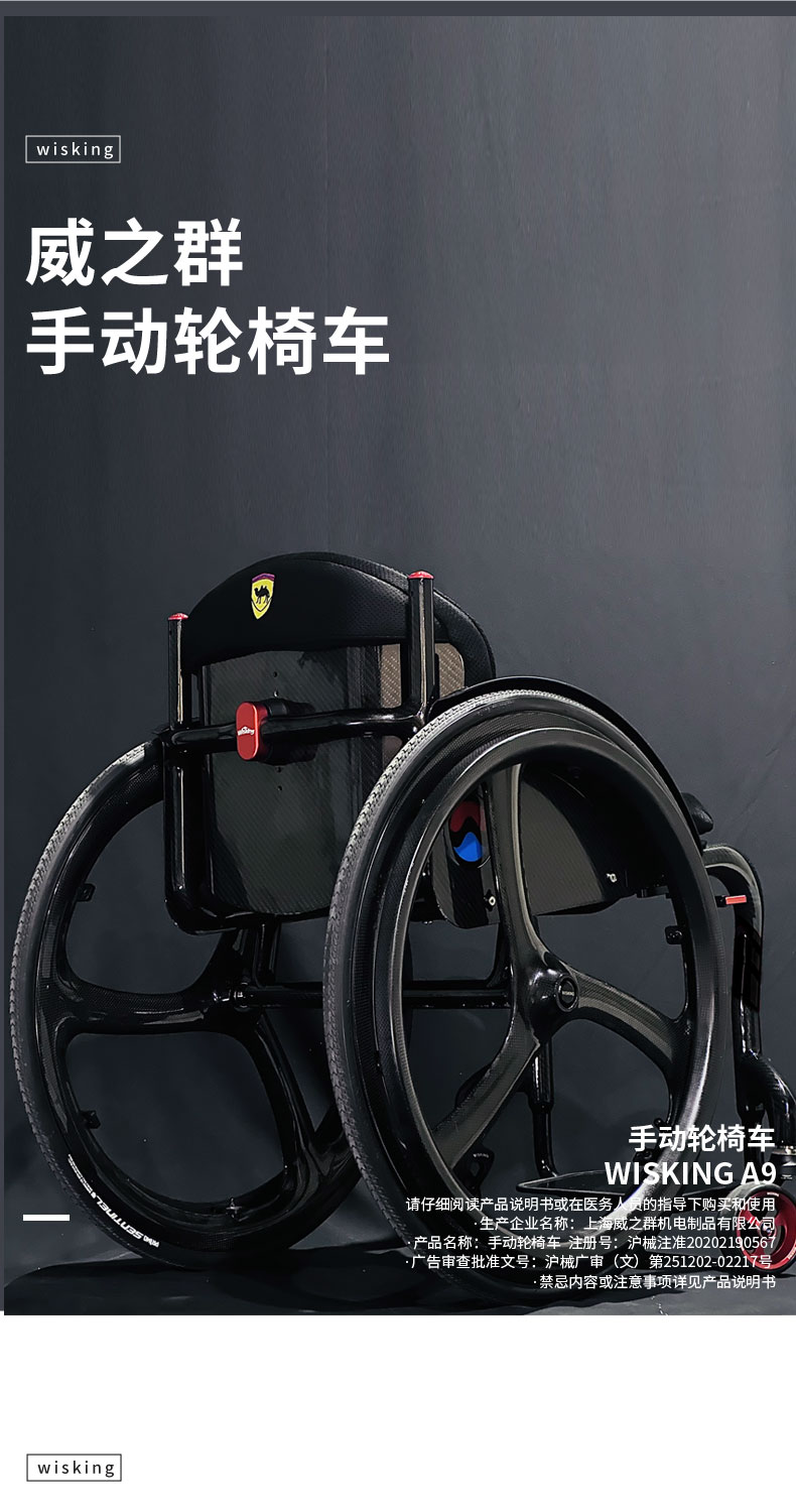 | 产品材质 | 碳纤维车架,碳纤维边板,碳纤维三刀轮。 | 使用说明 | 威之群运动式生活轮椅是根据脊髓损伤者的受伤位置、身高、体重,坐宽、坐深、小腿长度来量身定制的轮椅,非常人性化、个性化的解决了不同伤友对轮椅的不同需求问题。 |