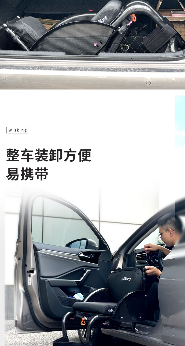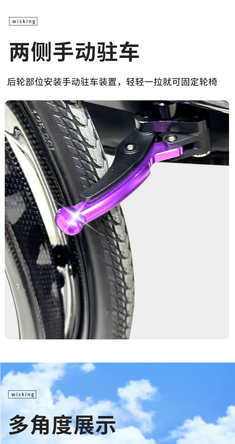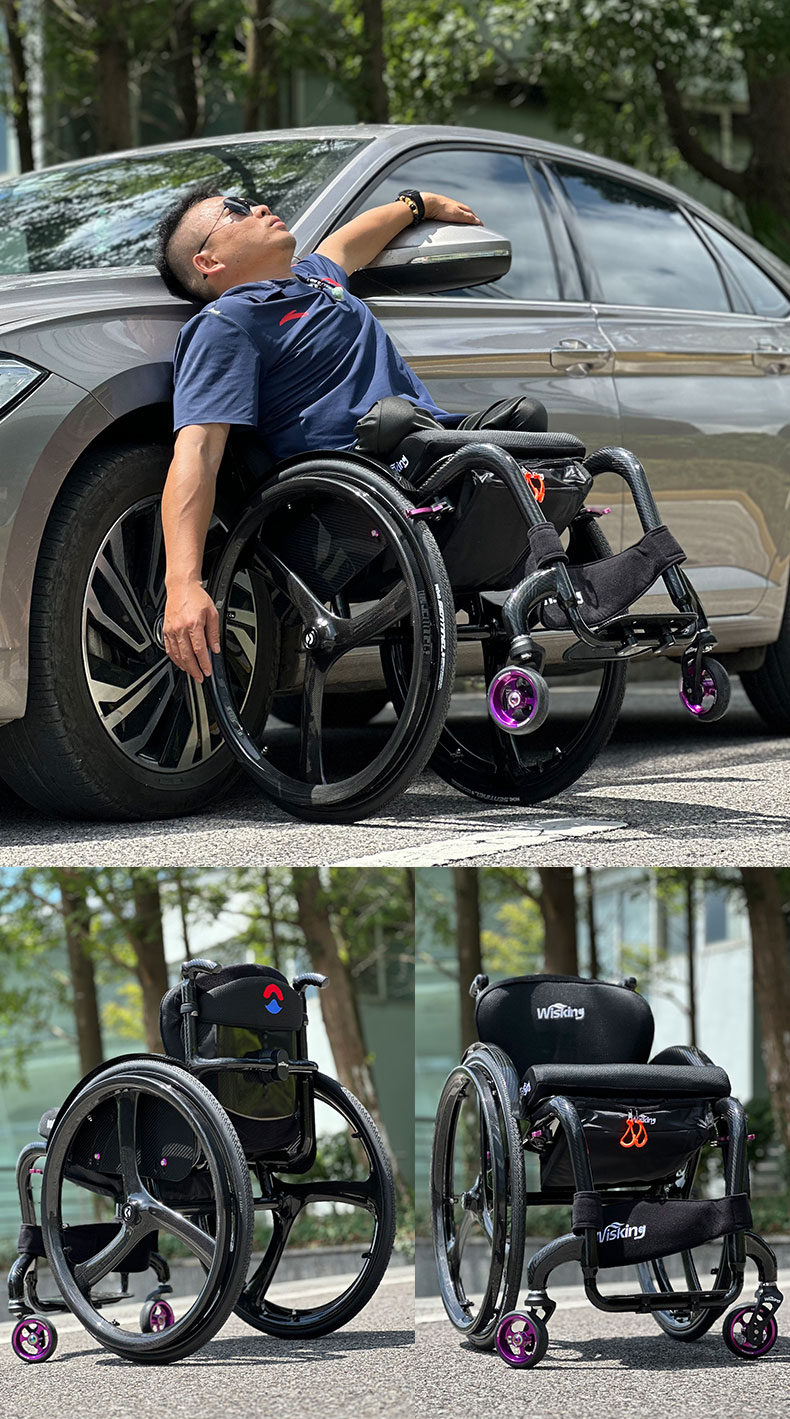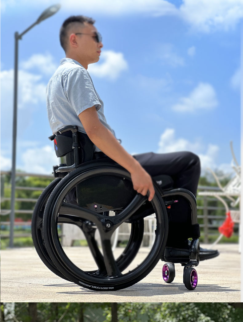 | 送货时效 | 20个工作日 | 产品参数 | 碳纤维车架,碳纤维边板,整车重量为10公斤左右,非常轻巧。前轮为4英寸,后轮为24英寸,后轮可快拆。前小轮、花鼓等颜色可选。坐宽、坐深、小腿长度均为定制尺寸。 |