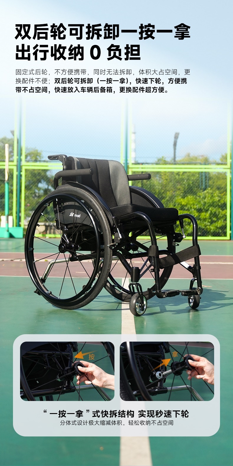 中进快拆式运动轮椅NA-431L