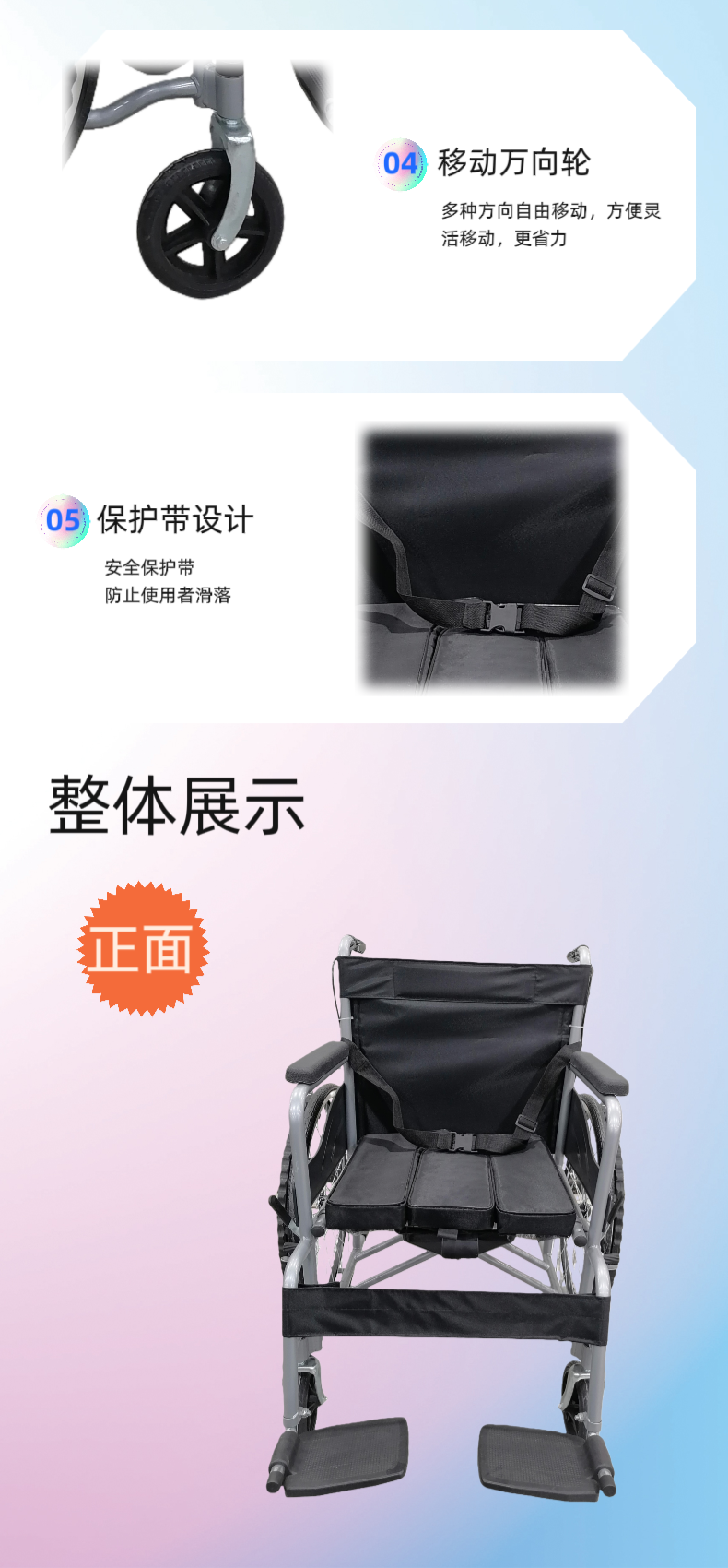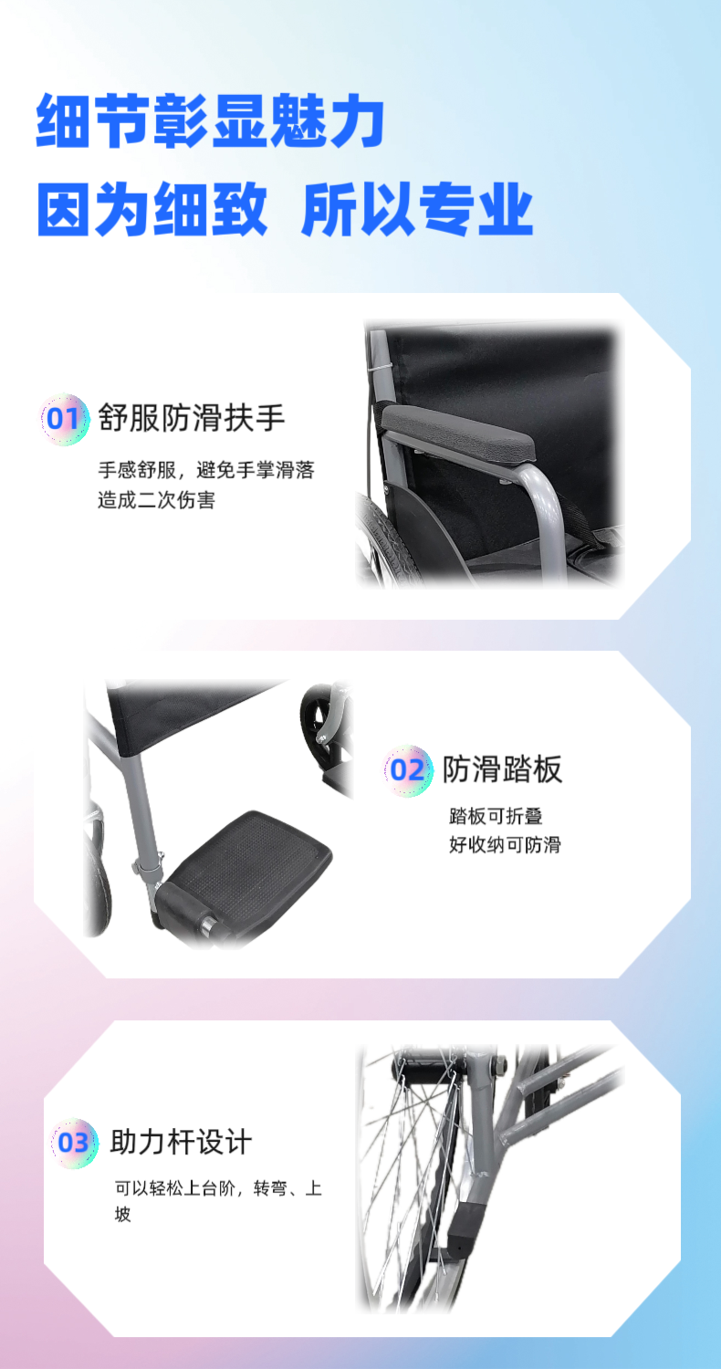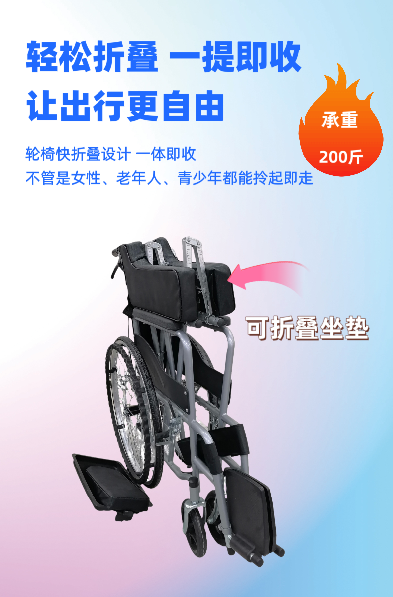 4.轮椅折叠宽度:260mm(±5mm),节省空间