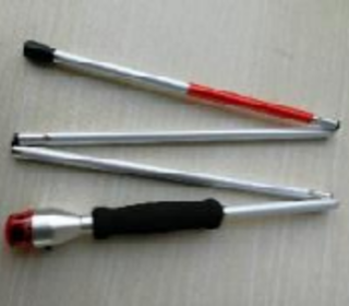2.性能参数:1)手柄结构设计适合盲杖使用中多种正确握持,声光报警器可以帮助盲人求助。2)杖尖采适合在水泥、沥青、砖质等硬质路面上使用,易更换 4.规格:1)整杖长度:132cm2)折叠后长度:35cm