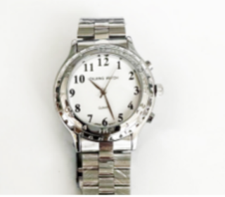 执行标准:按GB/T6044-2005《指针式石英手表》国家标准执行 1.内配置进口机芯与进口电池,搭配不锈钢表带,简约大字点加三针显示,可同时满足低视力或老人听力不便,耐用,防沾水,不过敏等特点。 2.盲表由表壳、金属表带、电子机芯、表扣,底盖组成; 3.功能:三针大字点数字显示,清晰超大声音语音报时,防过敏电镀层; 4.金属电镀层,环保无镍电镀,手表准确度,30天+-3秒内; 5.产品配置说明,不多与3个按键操作,方便低视力和盲人以及老年人使用。