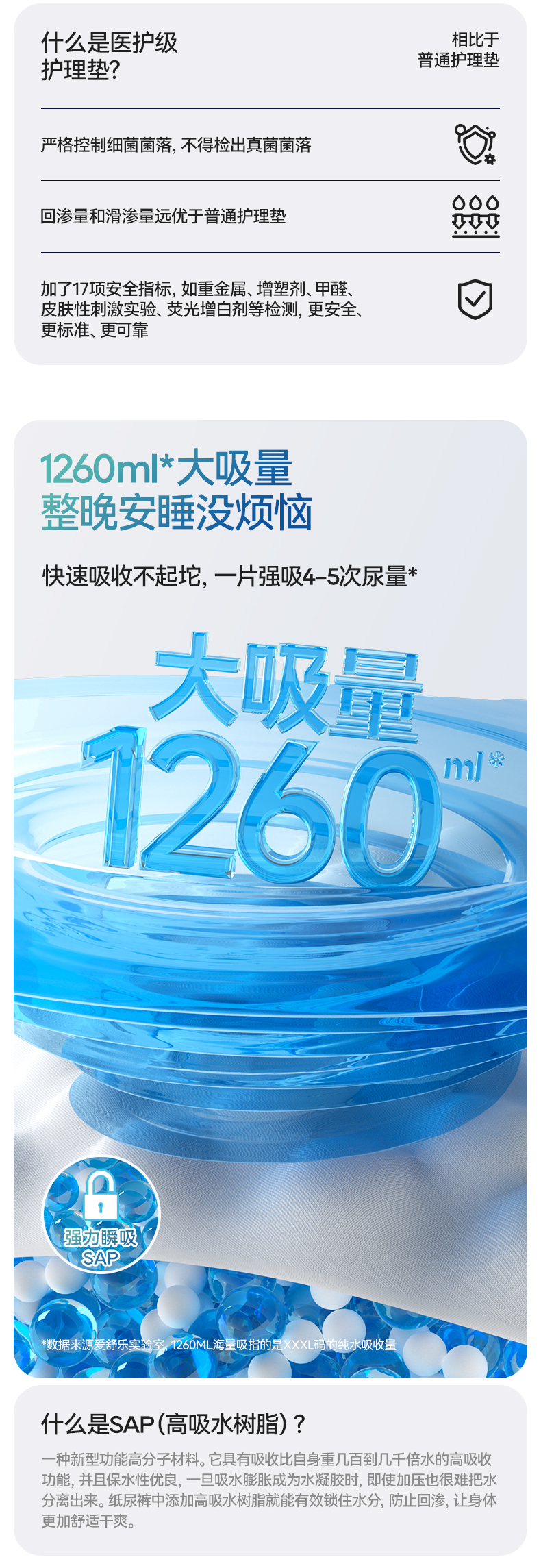 | 服务承诺 | 我们承诺发货的所有护理用品都是近期生产的合规合格产品,提供3年的质保期。在质保期内,若产品出现因质量问题导致的性能故障,如尿片、尿裤、尿垫吸水能力下降、防侧漏功能失效,泄漏等,我们将免费为您更换全新产品 | 是否进口 | 否 |