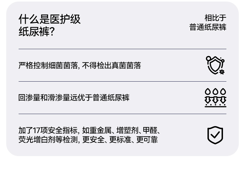 | 服务承诺 | 我们承诺发货的所有护理用品都是近期生产的合规合格产品,提供3年的质保期。在质保期内,若产品出现因质量问题导致的性能故障,如尿片、尿裤、尿垫吸水能力下降、防侧漏功能失效,泄漏等,我们将免费为您更换全新产品。 | 是否进口 | 否 |