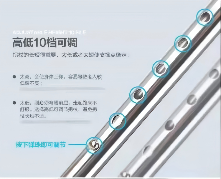 | 送货时效 | 接到订单后3个工作日内发货,具体时效以快递到达时间为准(节假日视情况而定) | 产品参数 | 规格尺寸:74cm-97cm 产品性能:优质铝合金,主体管直径22mm,壁厚1.2mm,表面防氧化处理。下爪为四爪,管直径16mm,壁厚1.0mm ,优质钢管,表面电镀处理,高度可调,10档调节,调节范围是74cm-97cm,徒手轻松调节,伸缩自如,定位安全可靠。脚垫采用耐磨、有弹性、表面摩擦系数较高的防滑橡胶材料。 |