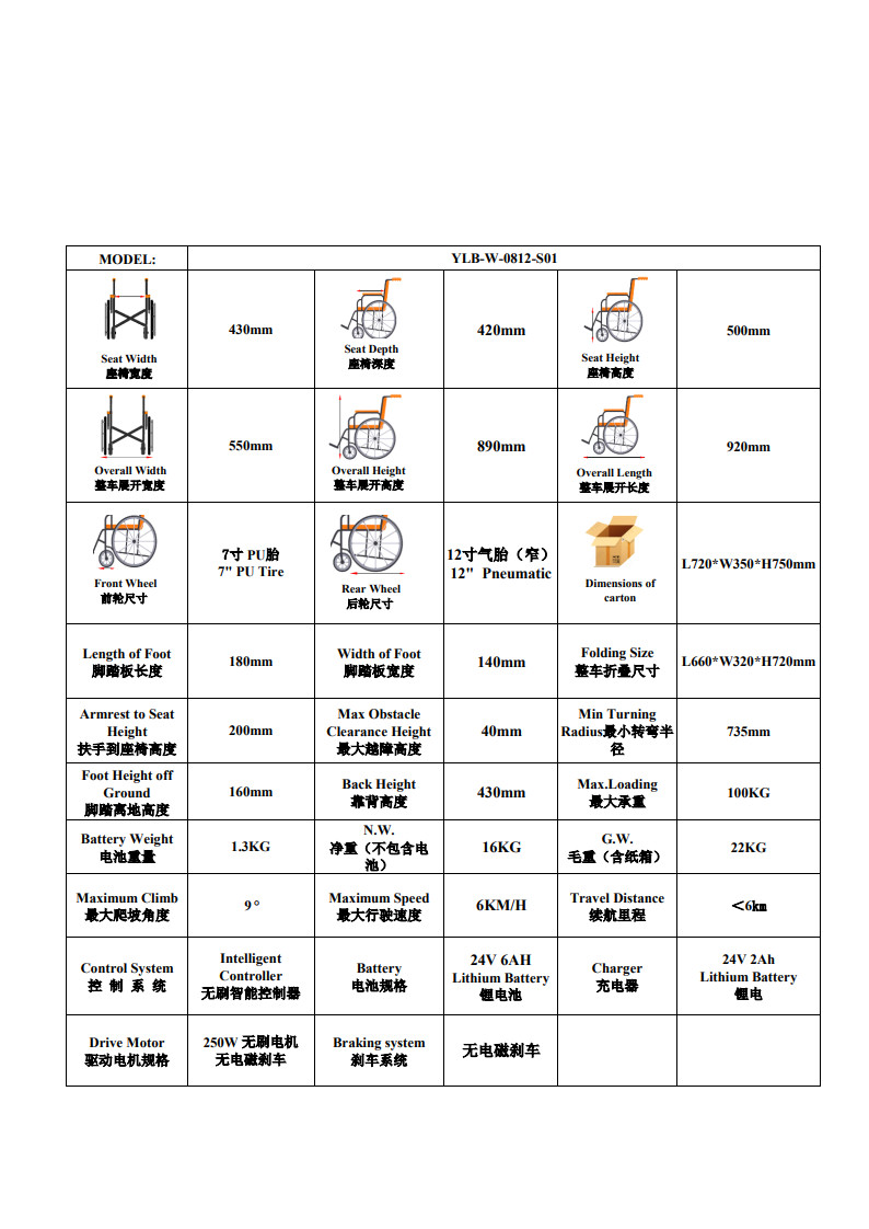 | 使用说明 | 在使用电动轮椅之前,请仔细阅读随车的产品使用说明书。 |