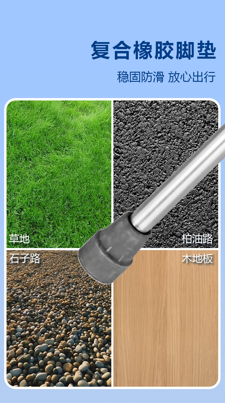 | 产品材质 | 1、铝合金管壁,表面氧化处理 2、防滑橡胶脚垫 |