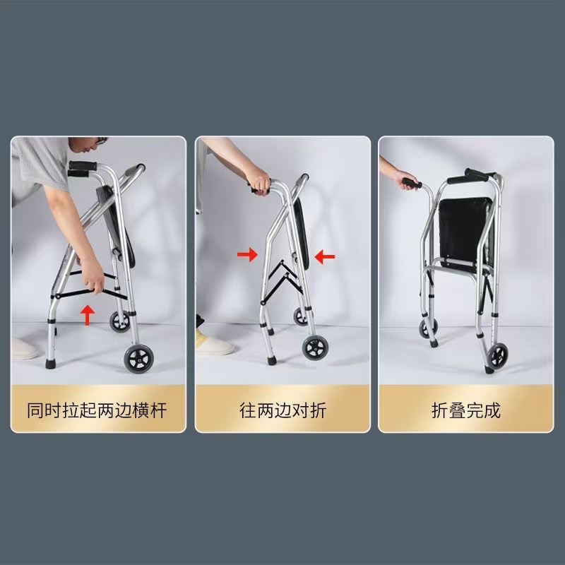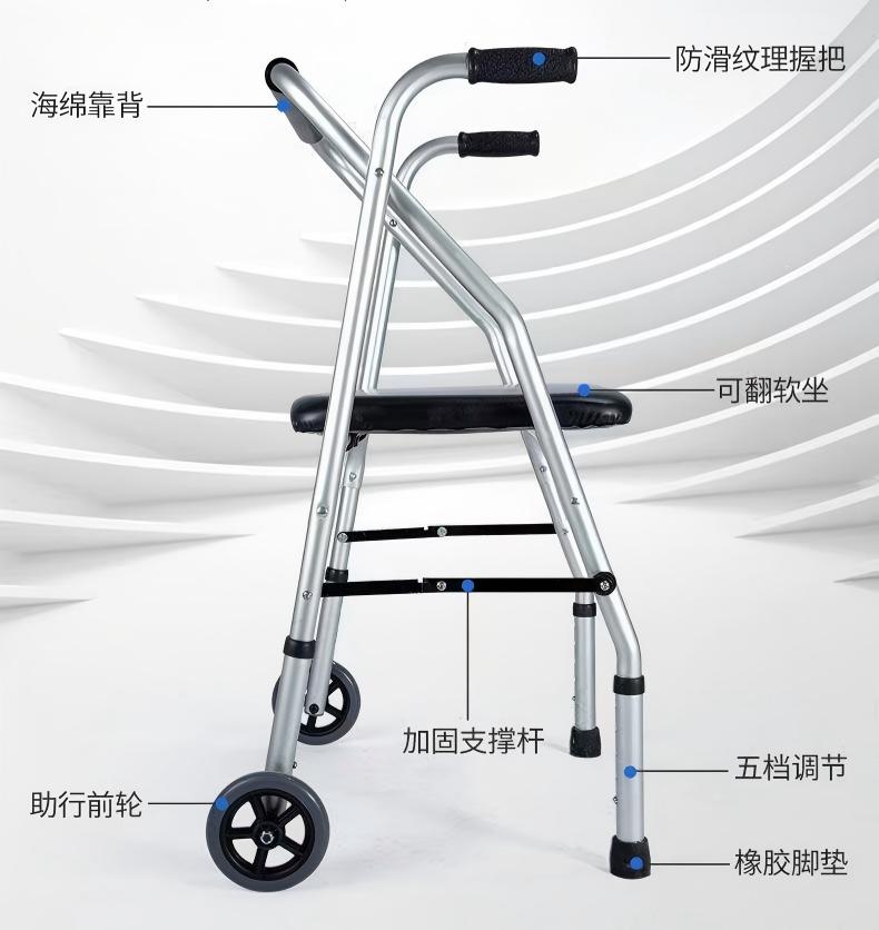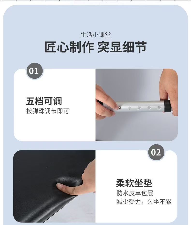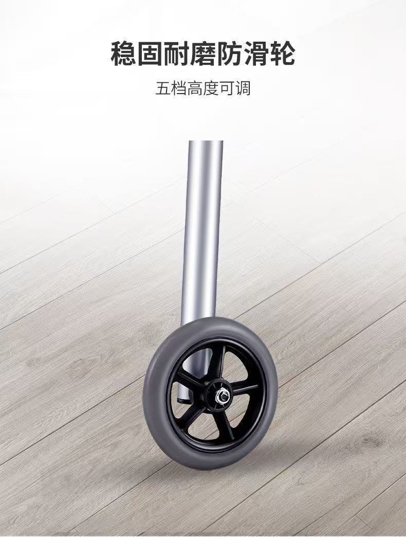 | 送货时效 | 接到订单后3个工作日内发货,具体时效以快递到达时间为准(节假日视情况而定) | 产品参数 | 48×64×81-91cm(长 宽 高) 产品性能:优质铝合金,大架管直径25mm,管壁厚度1.2mm,安全性能好,可折叠结构,美观耐用,使用方便。脚管:管径28mm,管壁厚度1.2mm,前置小轮,高度可调,5档调节,脚垫材质为耐磨、有弹性、表面摩擦系数高的防滑橡胶材质,着地性能好,稳定性佳。座垫为优质高密度海绵填充,美观耐用。前轮外皮采用优质橡胶材质,防滑耐磨。轮穀采用工程聚丙材质,结实耐用。把手配PVC手把,防滑舒适。 |