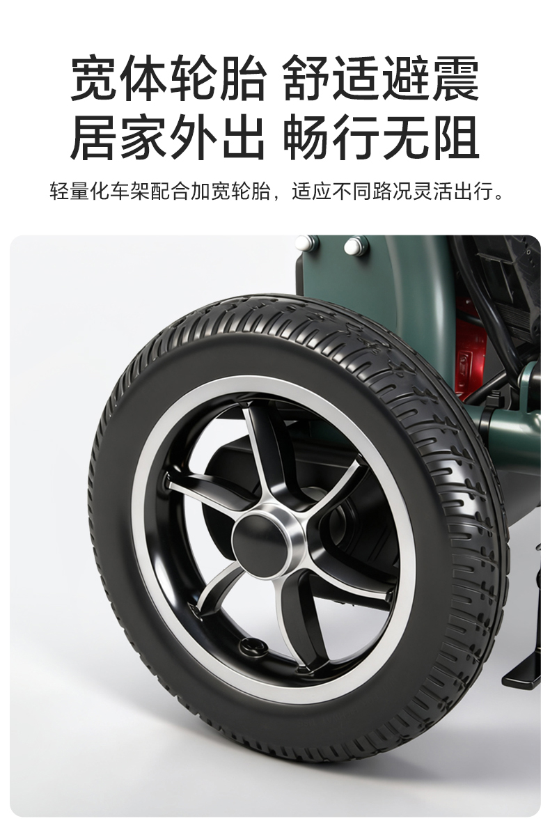 4.后轮:12寸PU后轮组合,具有转向灵活,轮胎耐磨耐用和减震性能好等优点。