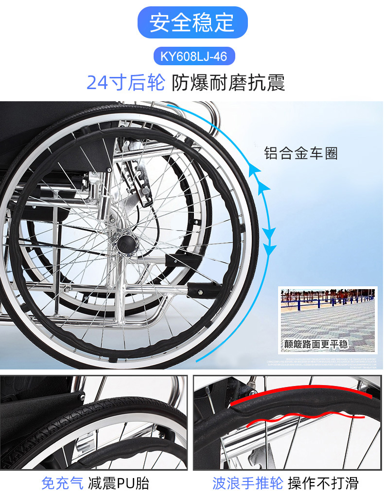 7.后轮:24英寸(60cm)实心胎后轮,减震功能卓越。