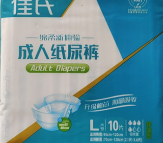 | 送货时效 | 收到订单后,7个工作日完成配送 | 产品参数 | 适用腰围:70-120cm(2.1尺-3.6尺) 适用臀围:95cm-120cm 佳氏成人纸尿裤10片一包, 一箱12包 |