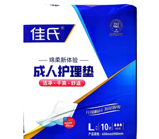 | 送货时效 | 收到订单后,7个工作日完成配送 | 产品参数 | 产品规格:60X90cm 一箱18包 佳氏护理垫10片 L(大号)(JS-0028) |