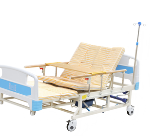 | 送货时效 | 接到订单后3个工作日内发货,具体时效以快递到达时间为准(节假日视情况而定) | 产品参数 | 规格尺寸:2050 mm *900 mm *500mm(长*宽*高) 产品性能:床架:采用优质加厚型钢焊接成型,表面静电喷塑。床头、床尾:采用ABS吹塑。脚轮:采用独立刹车医用静音万向脚轮,整床承重 300 公斤以上。手动起背、落腿功能:手动翻身角度:能够在 0-85 度任意角度坐起,在病人坐起时根据使用者的具体情况自主选择下弯腿角度,符合人体工学原理。膝部升降向上:向上:0-35°±5°向下:0°-80°±5°,侧翻折起角度0°-55°±5°。折叠护栏,护栏长1200mm,高300mm。其它辅助配件:使用环保椰棕长丝及高弹海绵制作的医用床垫,床垫参考厚度为6cm。专用塑料便盆一只。医用静音包罩脚轮4只,自带刹车功能、整床平卧承重大于300公斤,起背、曲腿活动可独立承重大于150公斤。带餐桌。医用两段式可升降不锈钢输液架一只。 |
