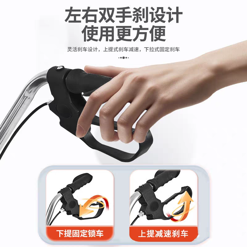 | 送货时效 | 接到订单后3个工作日内发货,具体时效以快递到达时间为准(节假日视情况而定) | 产品参数 | 产品性能:优质铝合金,大架管直径25mm,管壁厚度1.2mm,表面静电喷塑处理,安全性能好,可折叠结构、使用方便。前后轮外皮均采用耐磨、有弹性、表面摩擦系数较高的防滑橡胶材料,直径180mm,轮毂采用工程聚丙材质,着地性能好,稳定性佳。叉子采用增强尼龙材质,结实耐用! 座垫为优质高密度海绵填充,美观耐用。靠背套有高密度海绵管,舒适美观。闸把采用工程聚丙材质,结实耐用,下压闸把可固定刹车。配有金属储物筐。 |