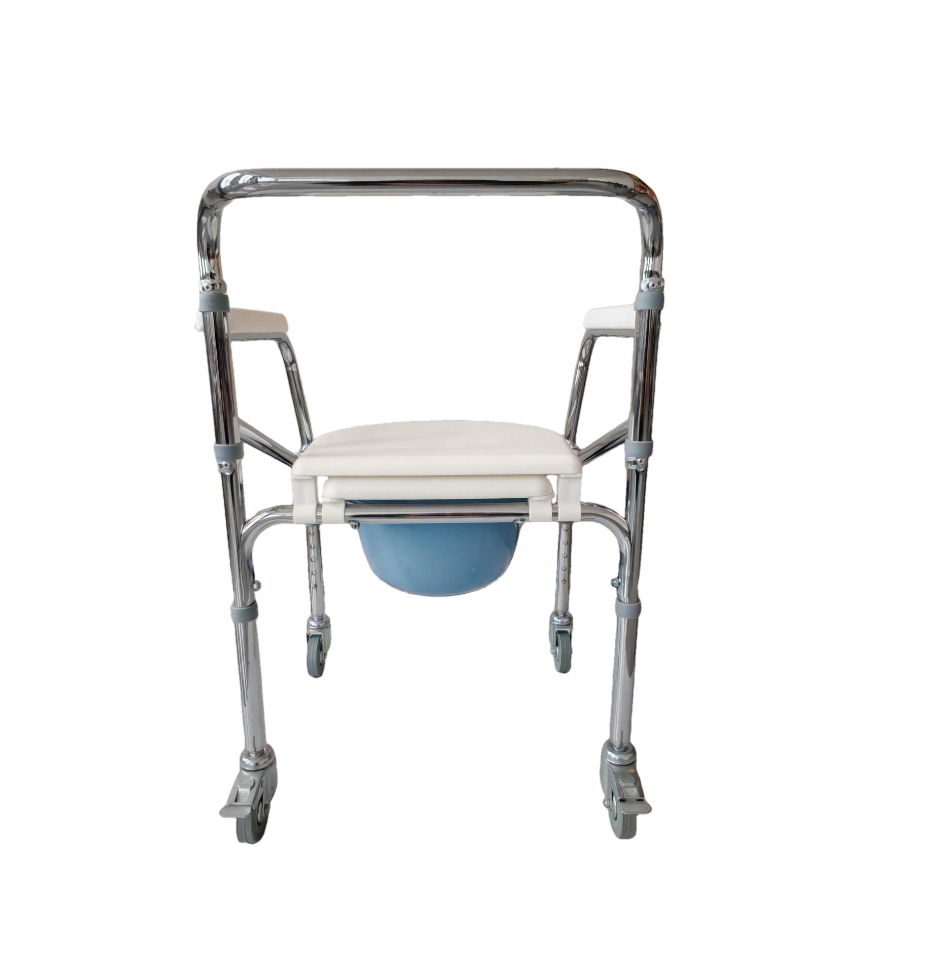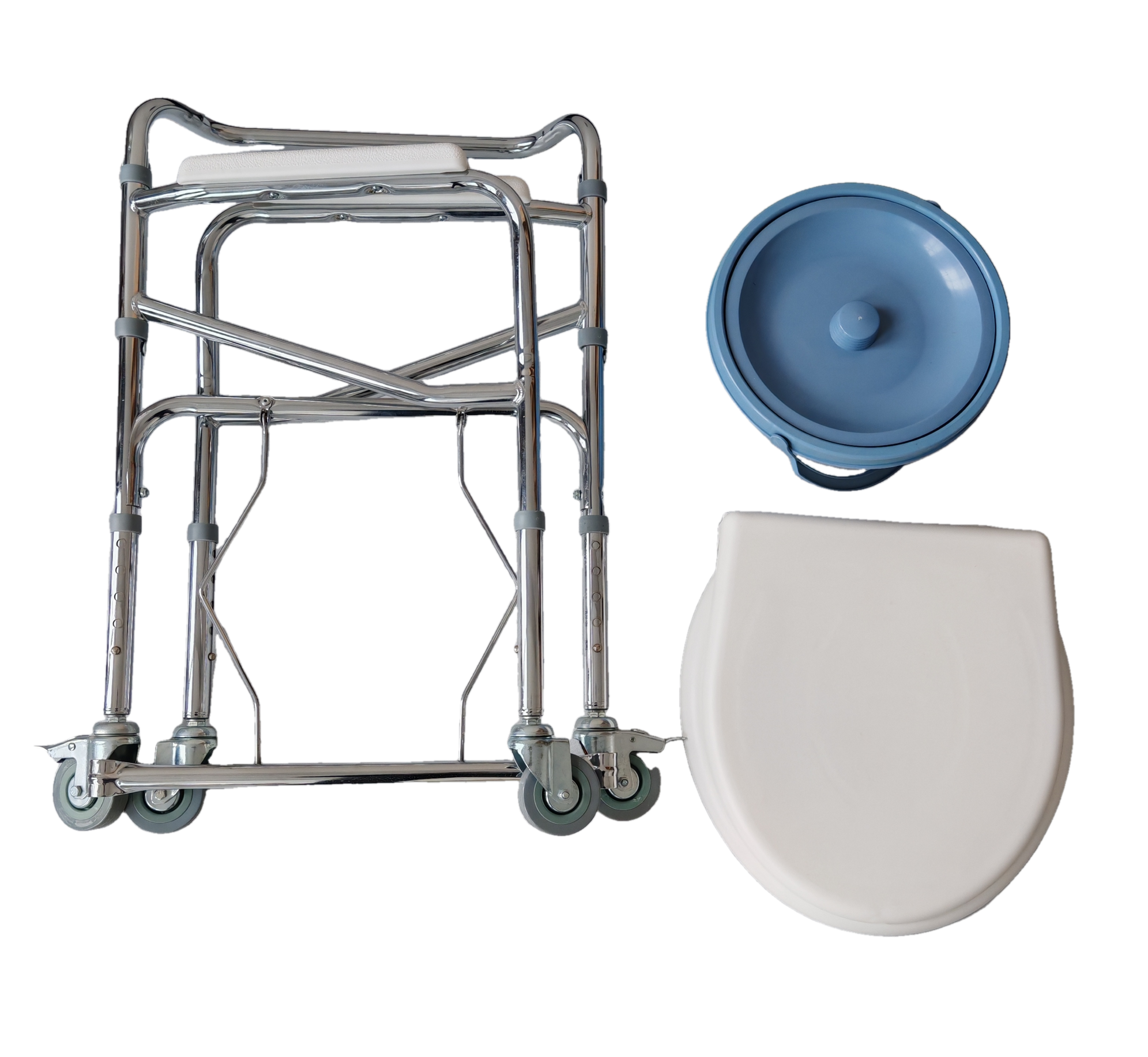 | 送货时效 | 接到订单后3个工作日内发货,具体时效以快递到达时间为准(节假日视情况而定) | 产品参数 | 产品性能:优质钢管,大架管直径22mm,管壁厚度1.0mm,腿部管直径25mm,管壁厚度1.0mm,表面电镀处理,带靠背、固定扶手,安全性能好,美观耐用。椅脚:配四寸万向静音脚轮,配有后刹车,稳定性佳,5档调节。座便器:厕板与便桶采用优质工程聚丙材质,强度好、触感舒适、美观坚固、座便器可卸下、大架可折叠。 |