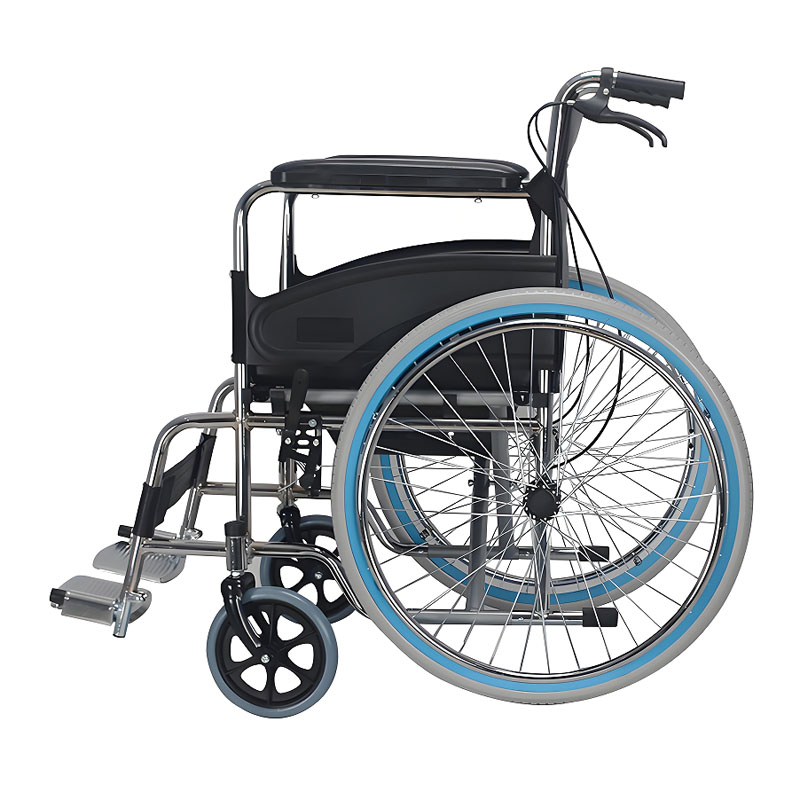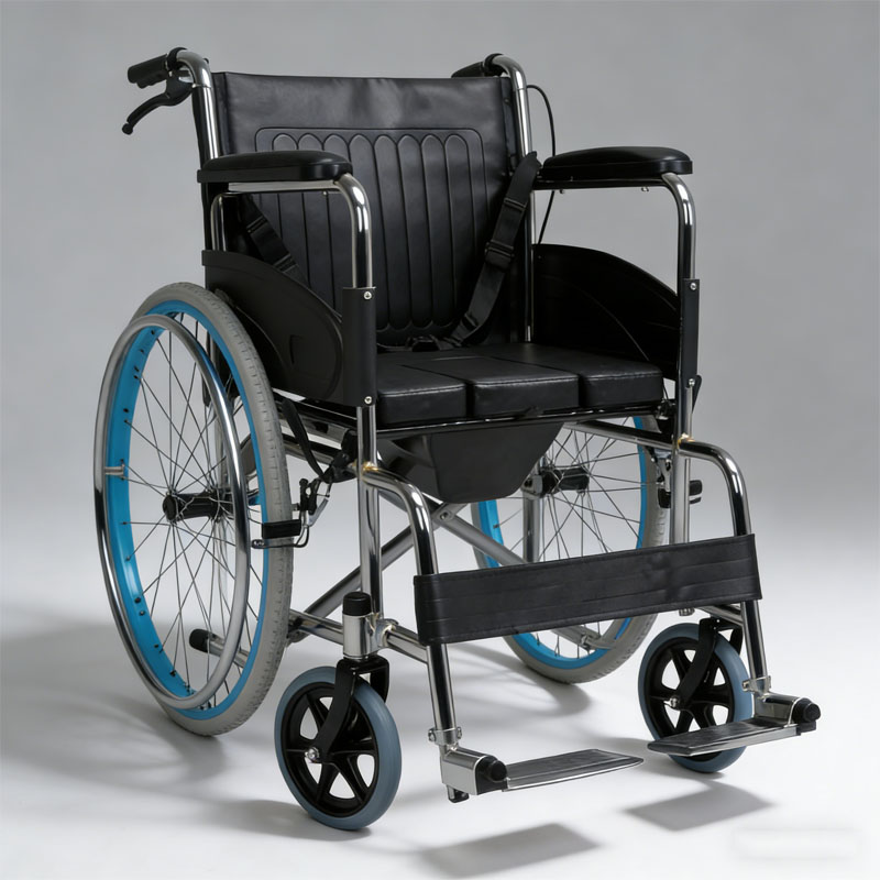 座面下方配有可拆卸式便盆,抽拉式设计便于快速取放和清理;部分款式会在便盆处加装防漏边缘,避免使用时出现渗漏情况。使用完毕后合上座面,即可恢复普通轮椅的代步功能,实现 “一车两用”。