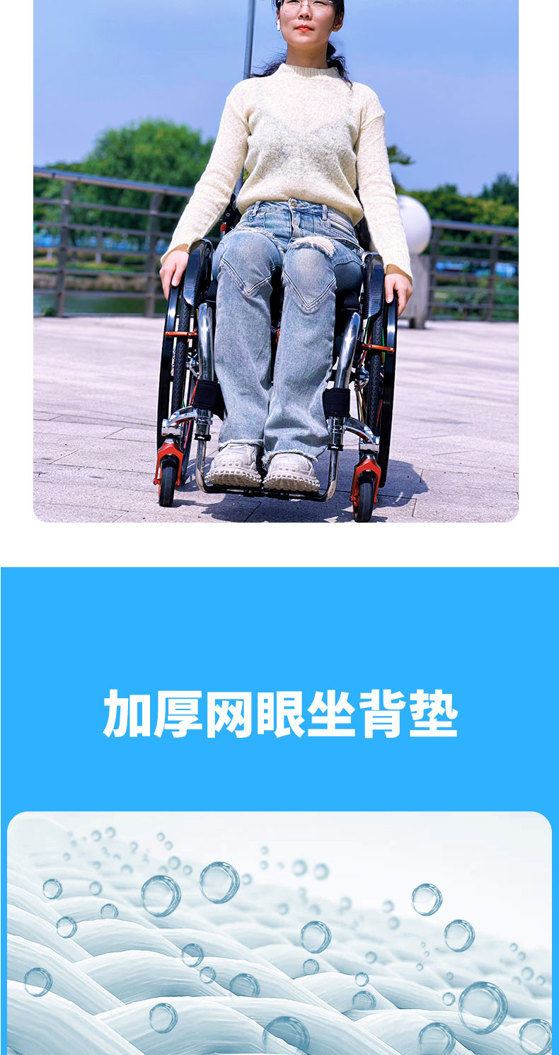 | 送货时效 | 15个工作日 | 产品参数 | 钛合金一体车架,碳纤维边板,整车重量为13公斤,非常轻巧。前轮为4英寸,后轮为24英寸,后轮可快拆。前小轮、花鼓等颜色可选。坐宽、坐深、小腿长度均为定制尺寸。 |
