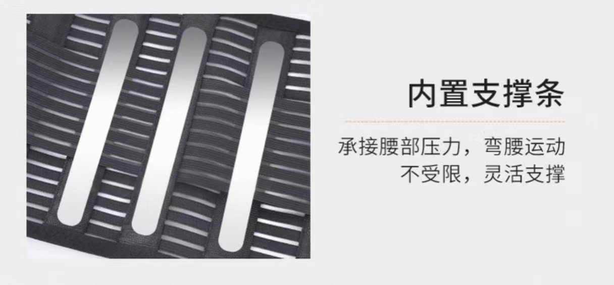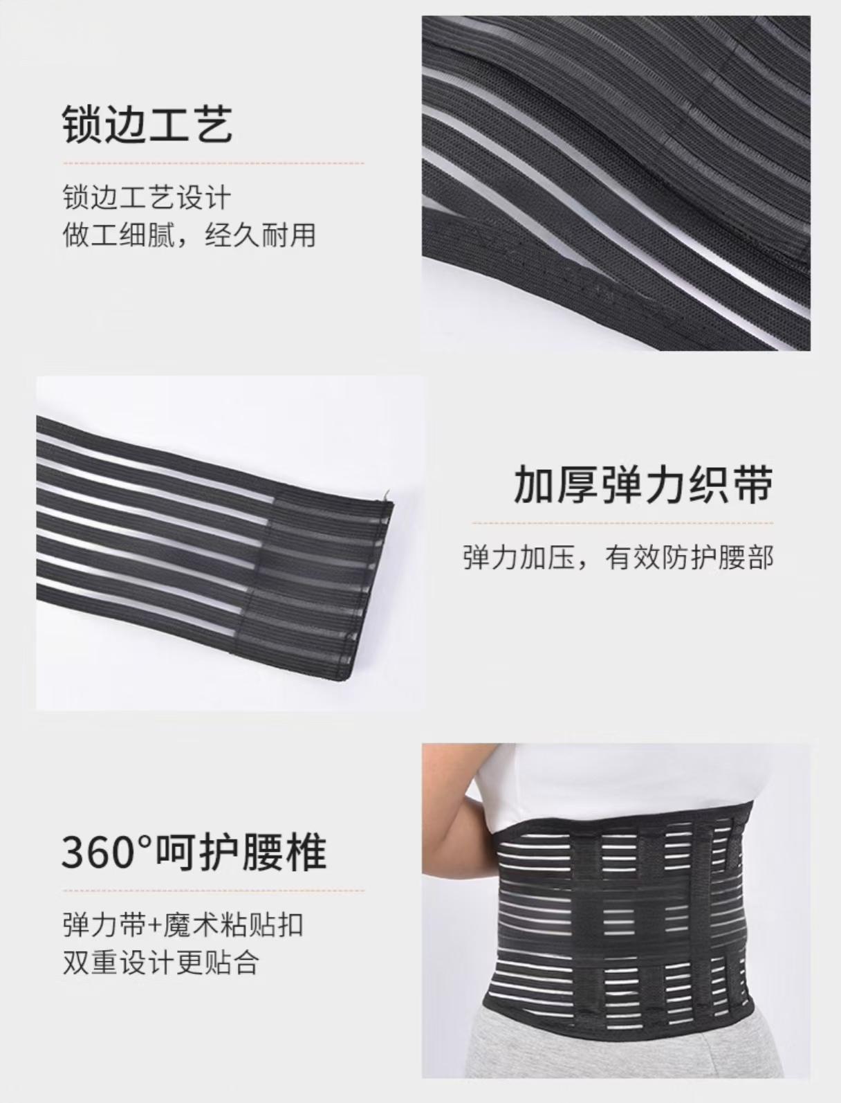 | 产品材质 | 材质采用鱼丝网眼面料、聚酯纤维、支撑条、弹力带等组成 | 使用说明 | 用于对人体腰部的外固定或支撑。对腰间盘突出,腰积劳损,急性闪腰,扭腰,等有恢复护理作用。 |