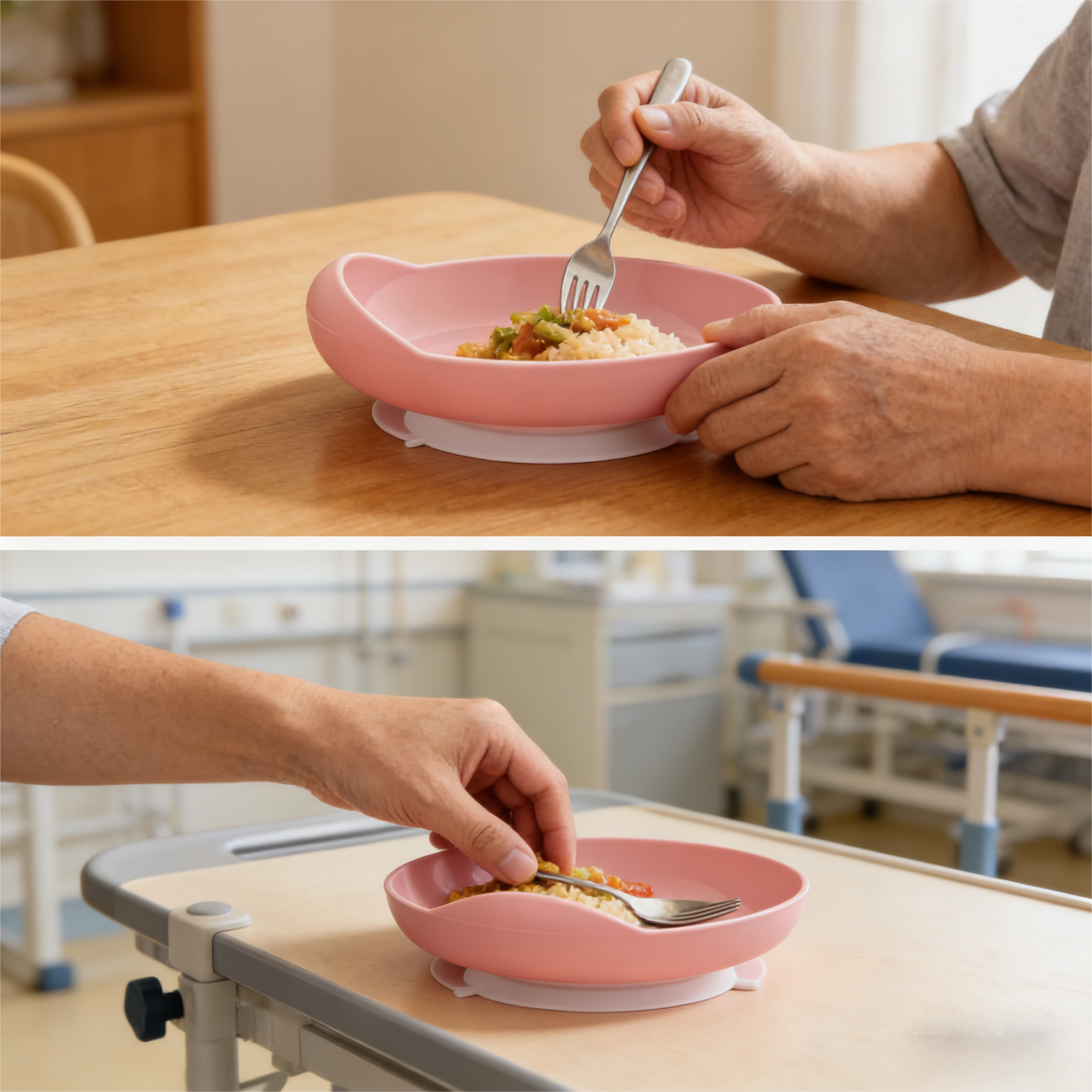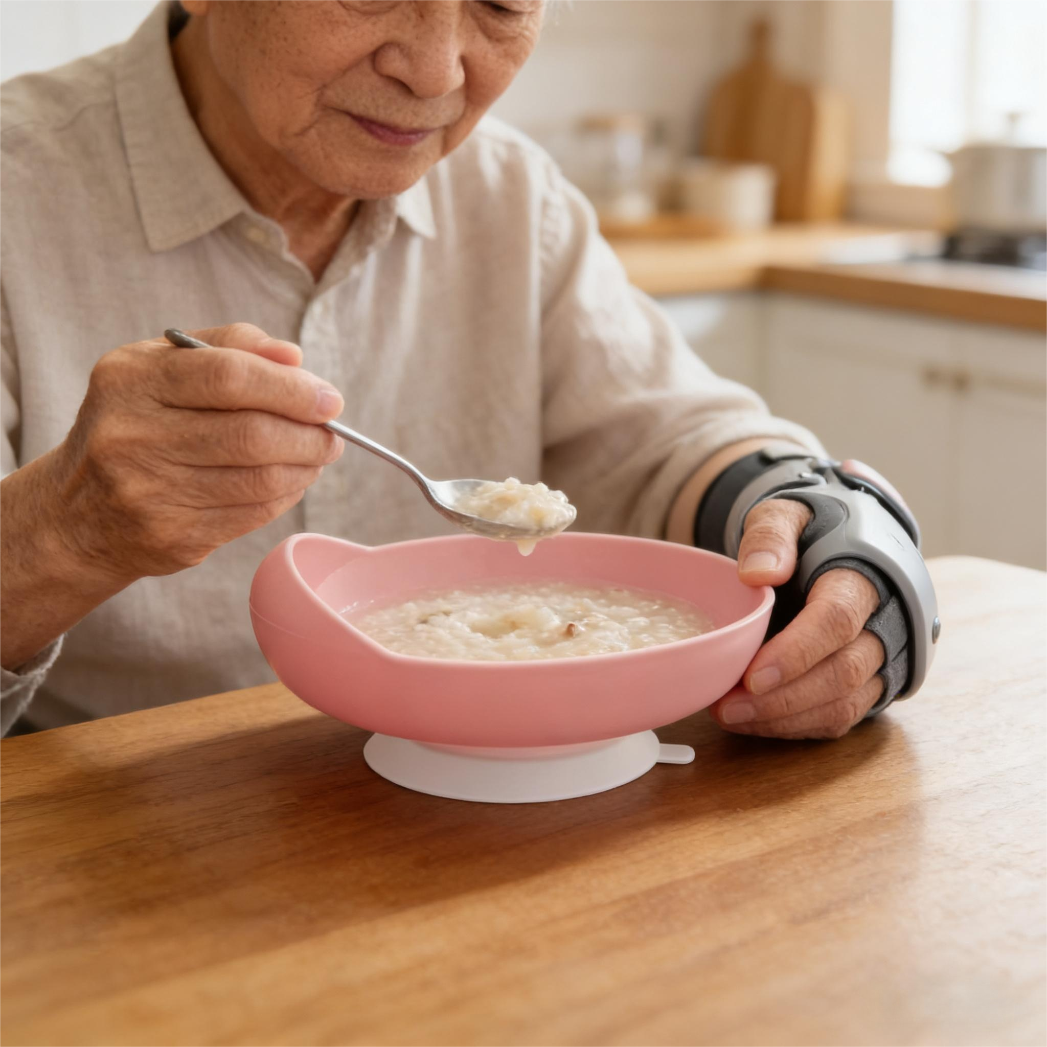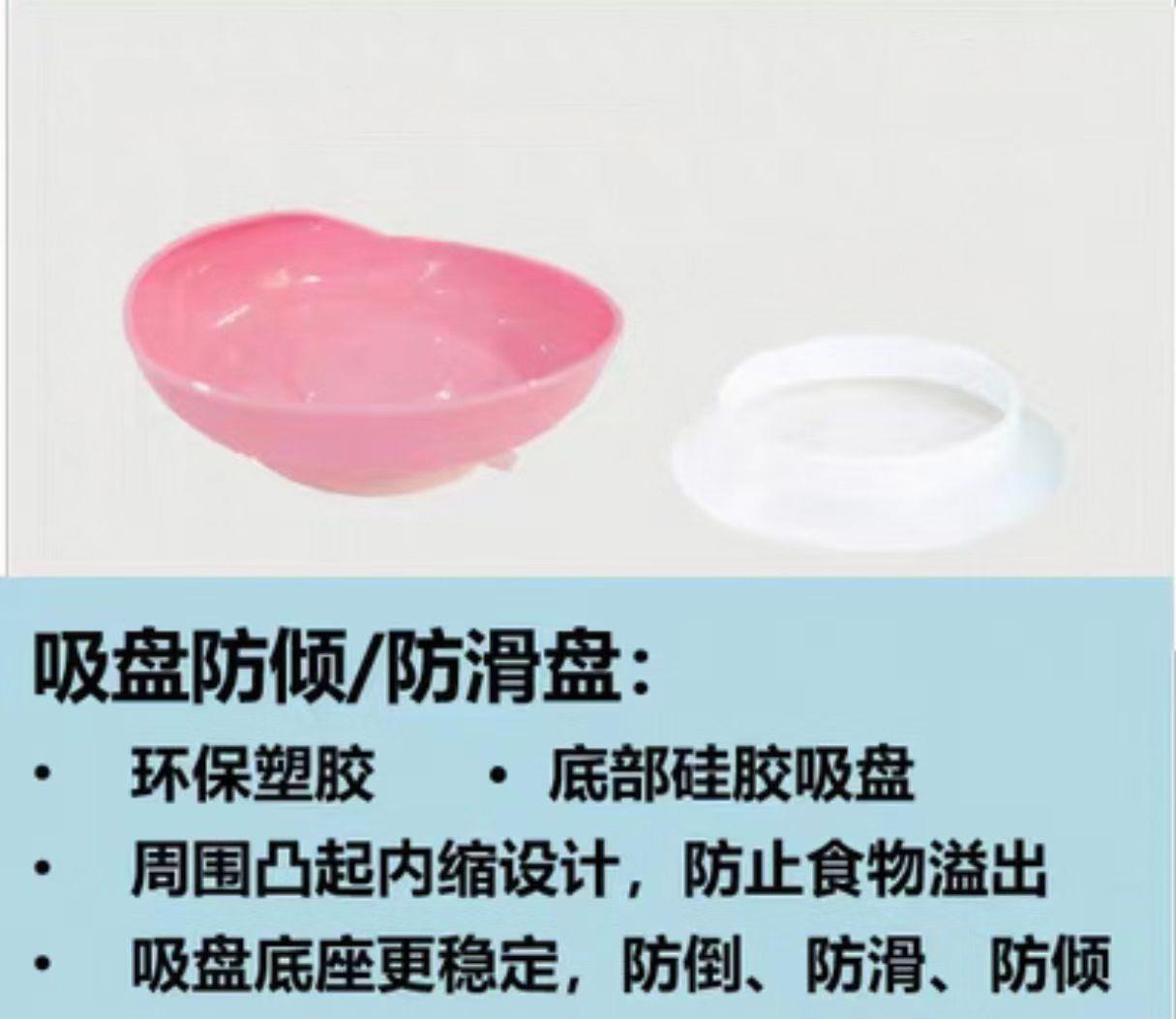 | 产品材质 | PP材质 | 使用说明 | 用于功能障碍人士单手进食或辅助上肢协调性差的人群进食。底部有吸盘,可固定碗身。可根据自身需求去掉防滑底座单独使用,盘口一侧为屋檐式设计,防止食物遗洒。 |