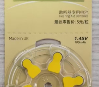 | 送货时效 | 预约后7个工作日内 | 产品参数 | 型号:A10. 标称电压:1.45V。 工作温度范围:-10°C ~ +50°C(避免极端温度影响放电效率)。 储存温度/湿度:建议 20°C 以下,相对湿度≤65%(未开封状态)。 有效期:未开封存放 2-3 年(生产日期标注于包装)。 空气孔设计:多孔透气结构,确保氧气持续进入电池。 环保标准:符合 RoHS、无汞(Hg-free)、低铅(≤20ppm)等。防漏设计:采用密封技术防止电解液泄漏,保护助听器电路。 |